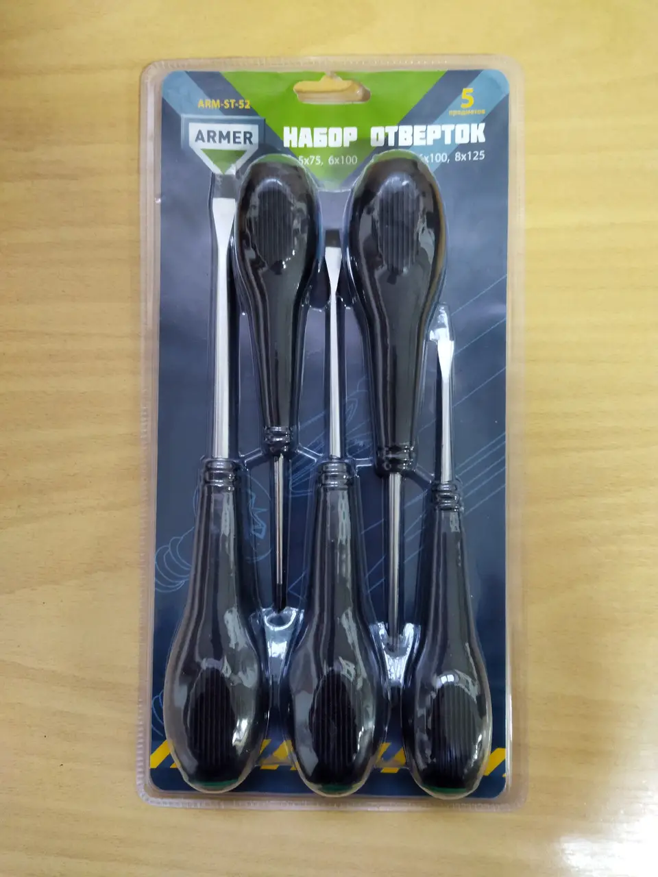 Набір викруток 5 шт. магнітні: шліц 5,6,8 мм; хрест 5,6 мм Armer (блістер)